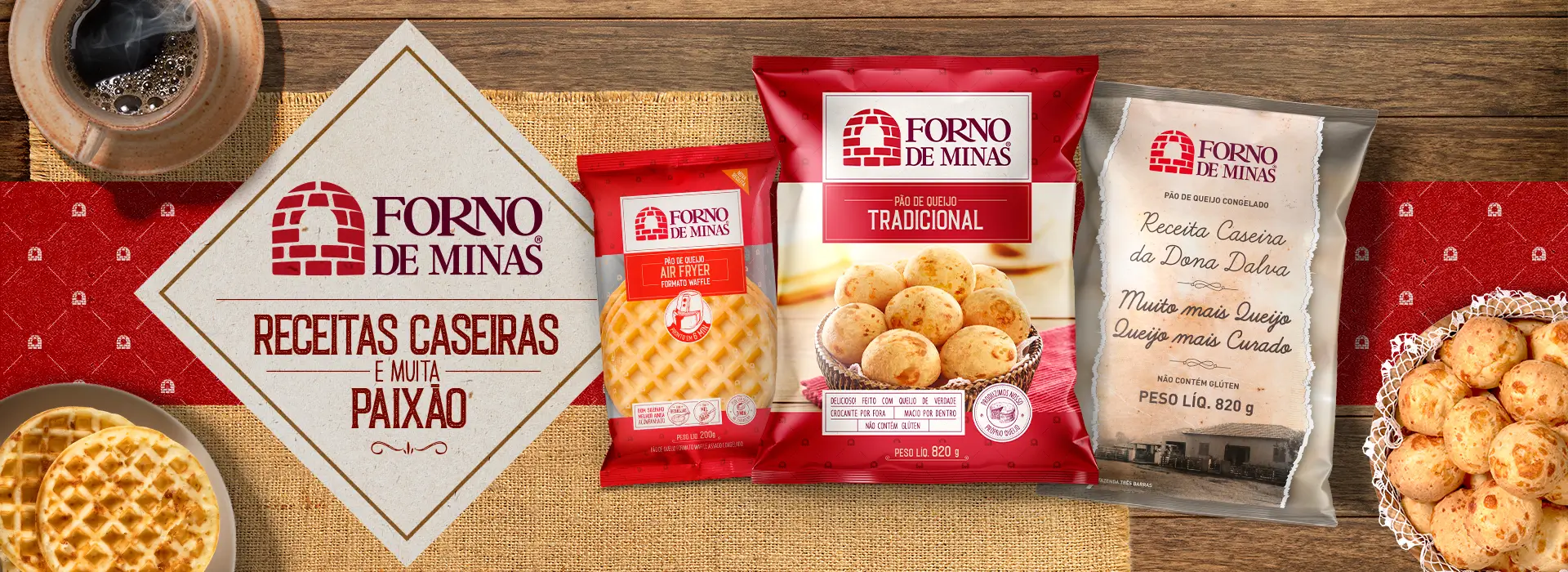 Pães de queijo, folhados, massas, lasanha, waffle e muito mais... a Forno de Minas deixa qualquer hora do seu dia mais prática, saborosa e nutritiva: